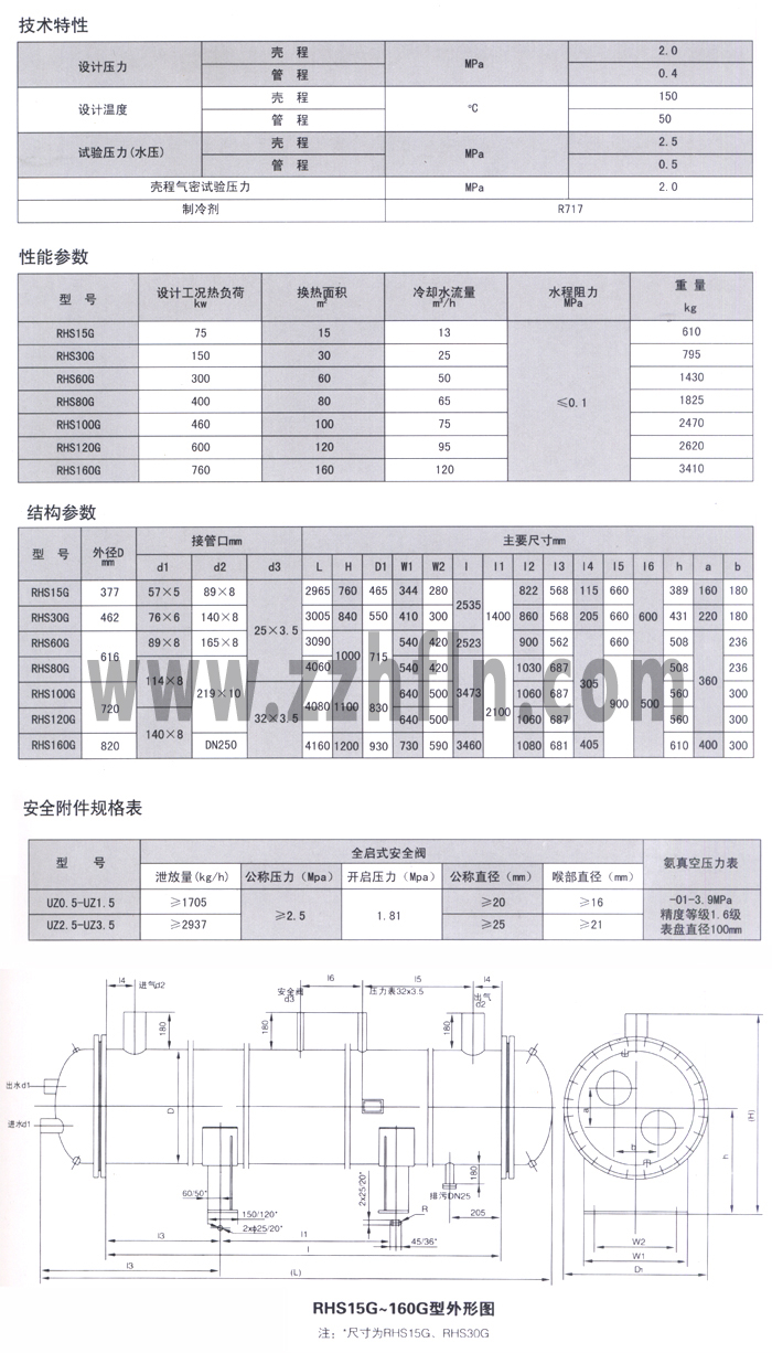 RHS-G系列热回收器在氨制冷系统中接在压缩机与泠凝器之间,用于回收压缩机排出的高温高压气体显热。